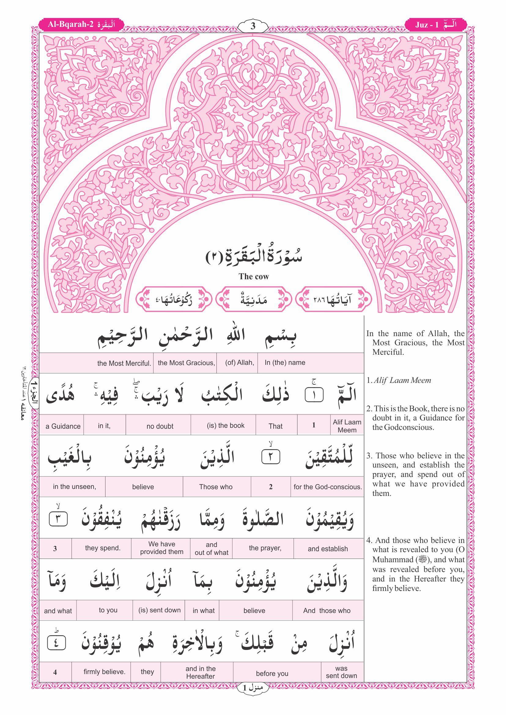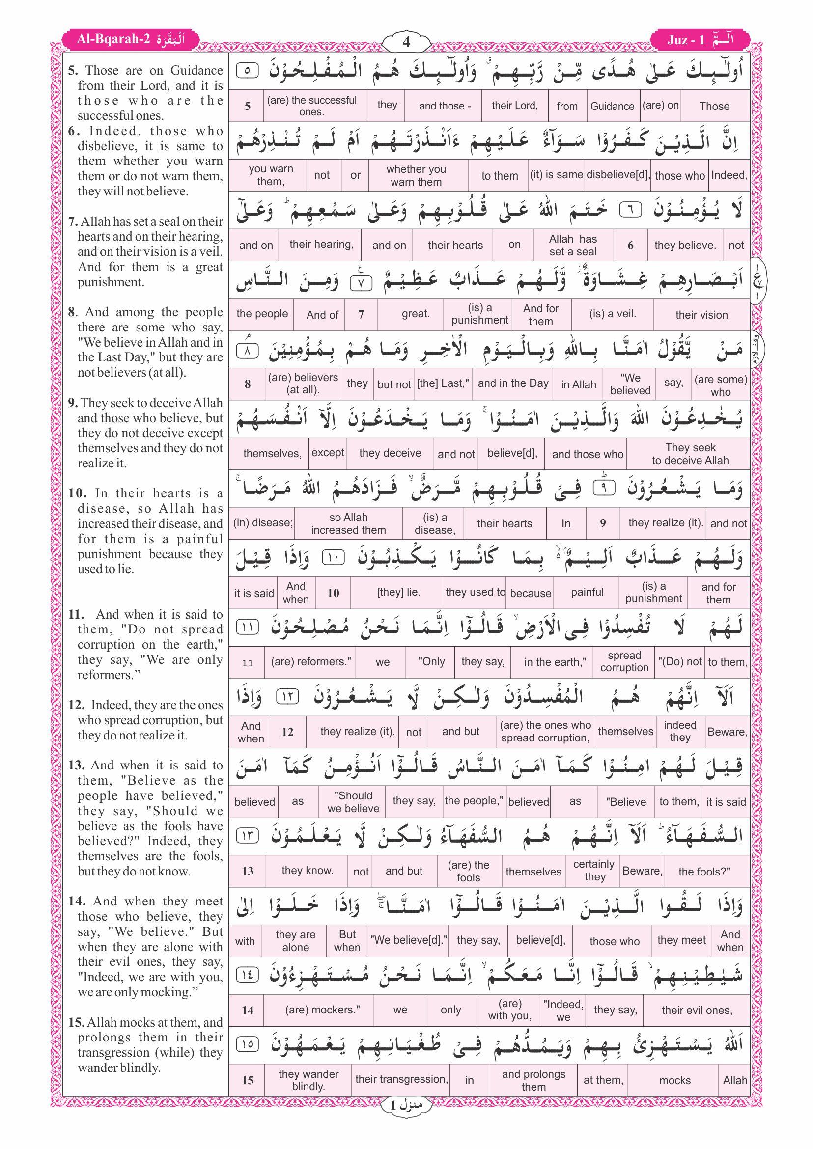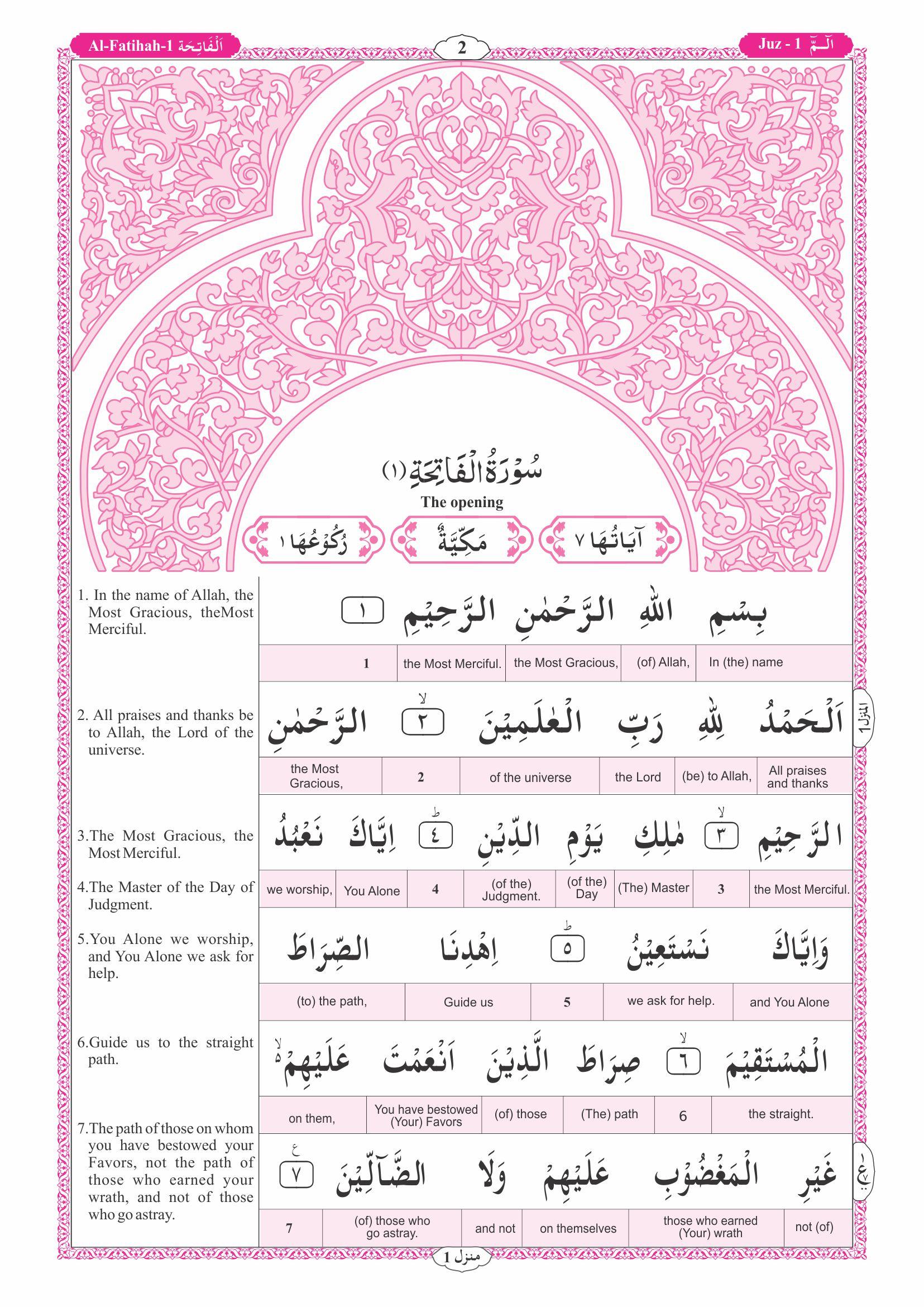 Description: Word-For-Word Translation to facilitate the learning of Qur’anic Arabic Unique features to help you understand the Qur’an – Easy word-for-word & running translation – 15 lines/page (just like Hafizi Mushaf) – Tajweed-coded font – Bookmark with Tajweed rules & supplication for Sajdah of Tilawah