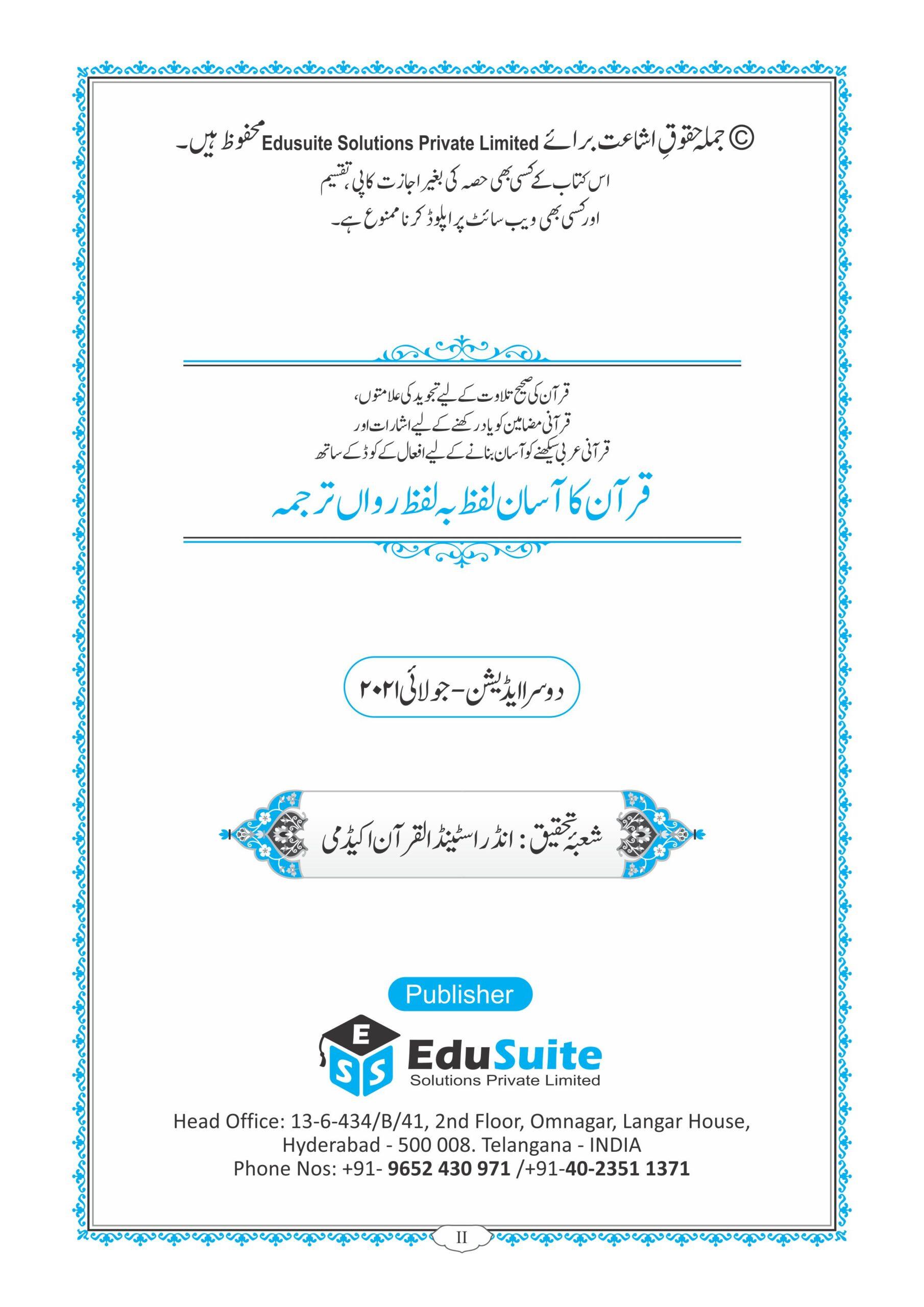 Description: Word-For-Word Translation to facilitate the learning of Qur’anic Arabic Unique features to help you understand the Qur’an – Easy word-for-word & running translation – 15 lines/page (just like Hafizi Mushaf) – Tajweed-coded font – Bookmark with Tajweed rules & supplication for Sajdah of Tilawah